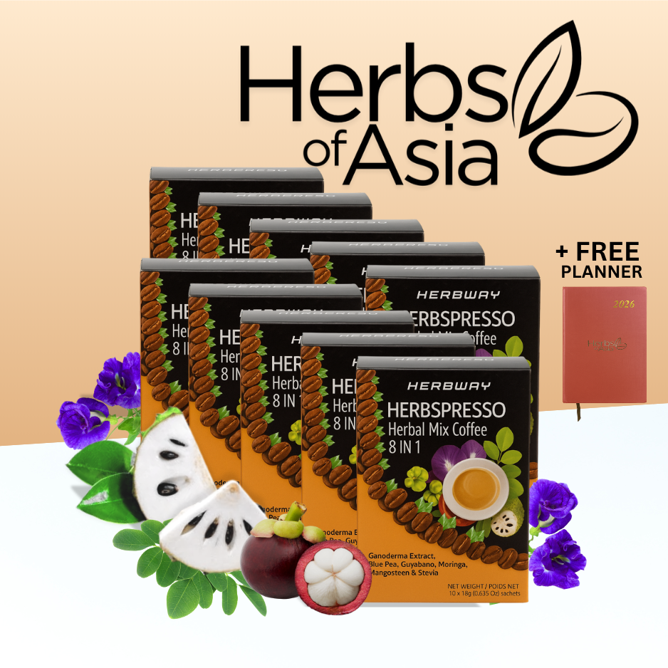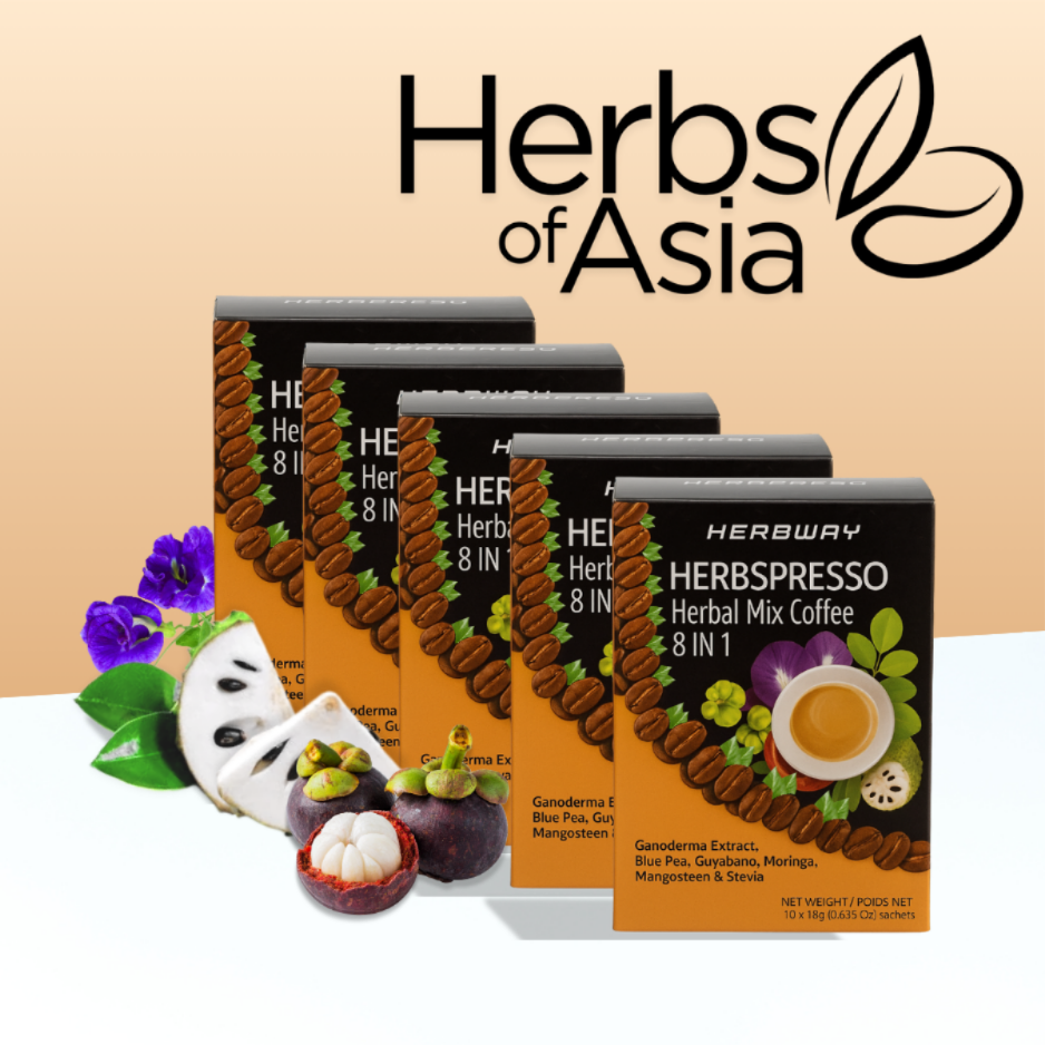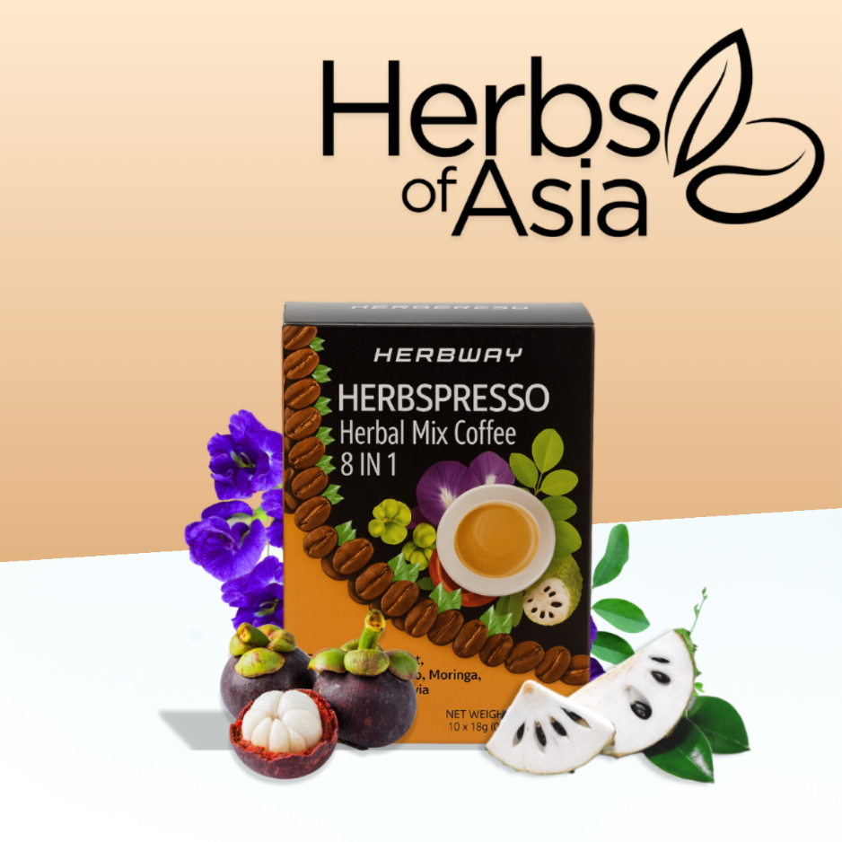 Herbspresso Herbal Mix Coffee is a delicious and healthy blend of premium coffee and powerful herbal extracts. It combines Ganoderma Extract, Blue Pea, Guyabano, Moringa, Mangosteen, and Stevia — ingredients known for their immune-boosting, antioxidant, and energizing benefits. Perfect for coffee lovers who want both taste and wellness in every cup.